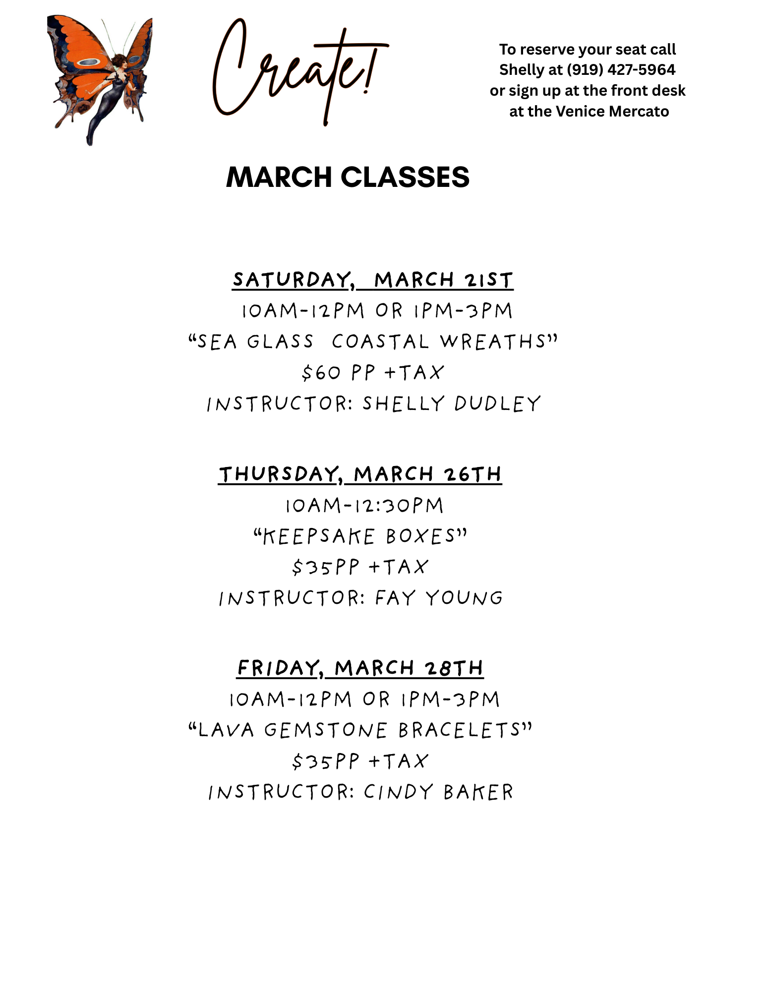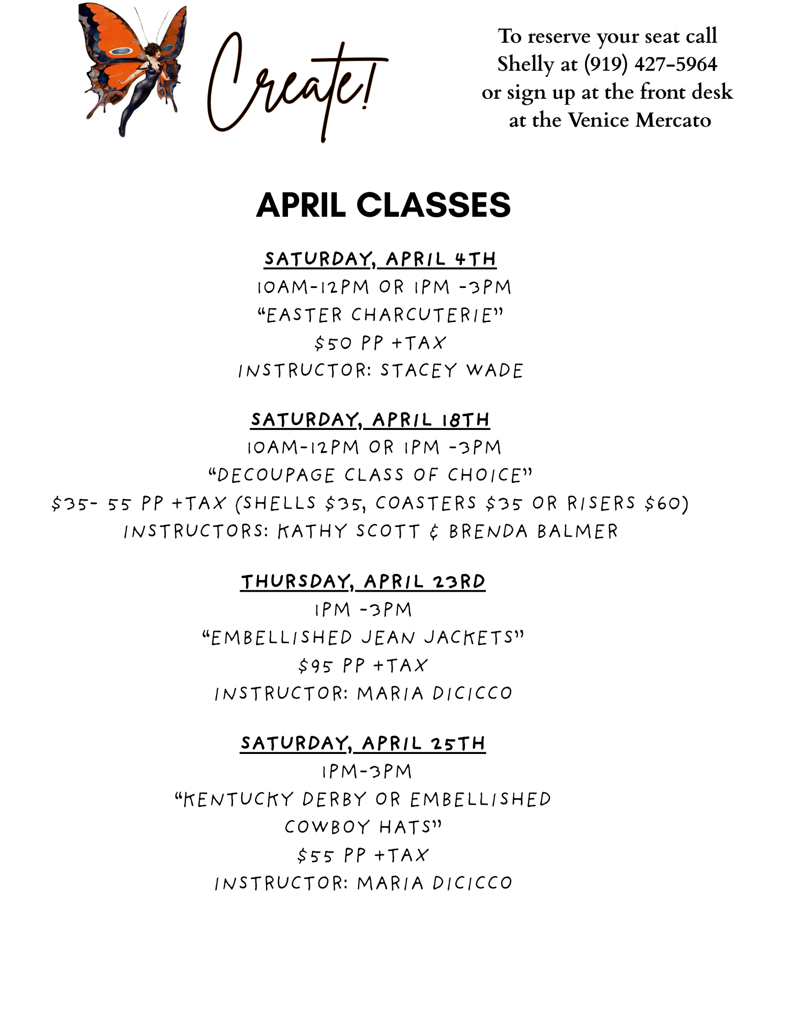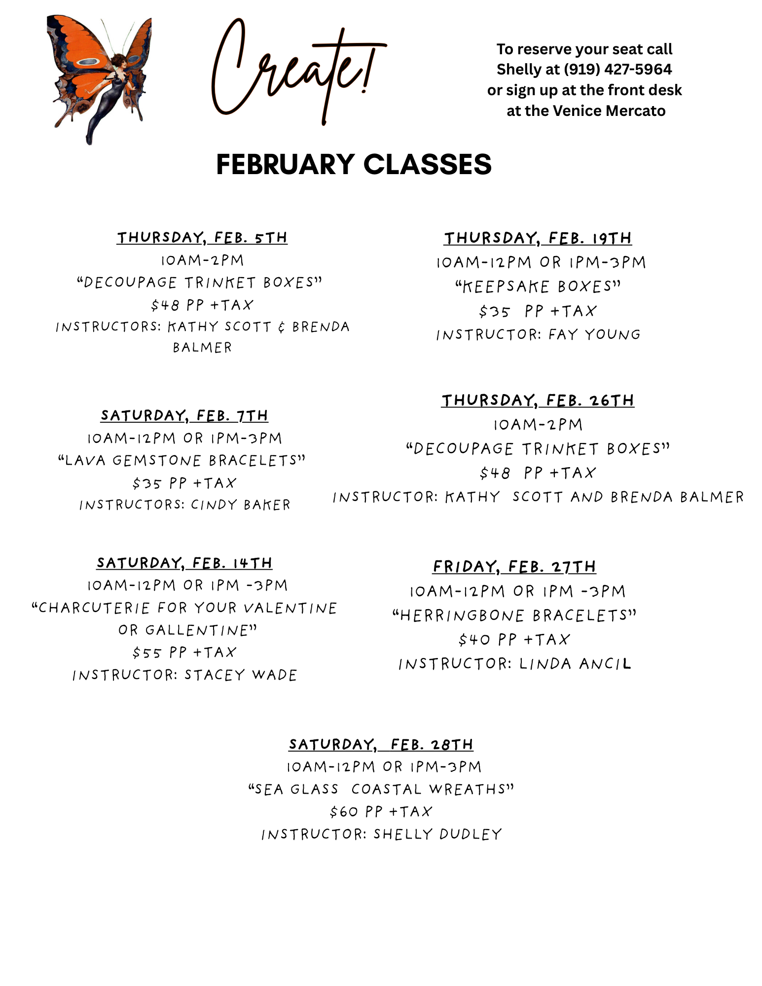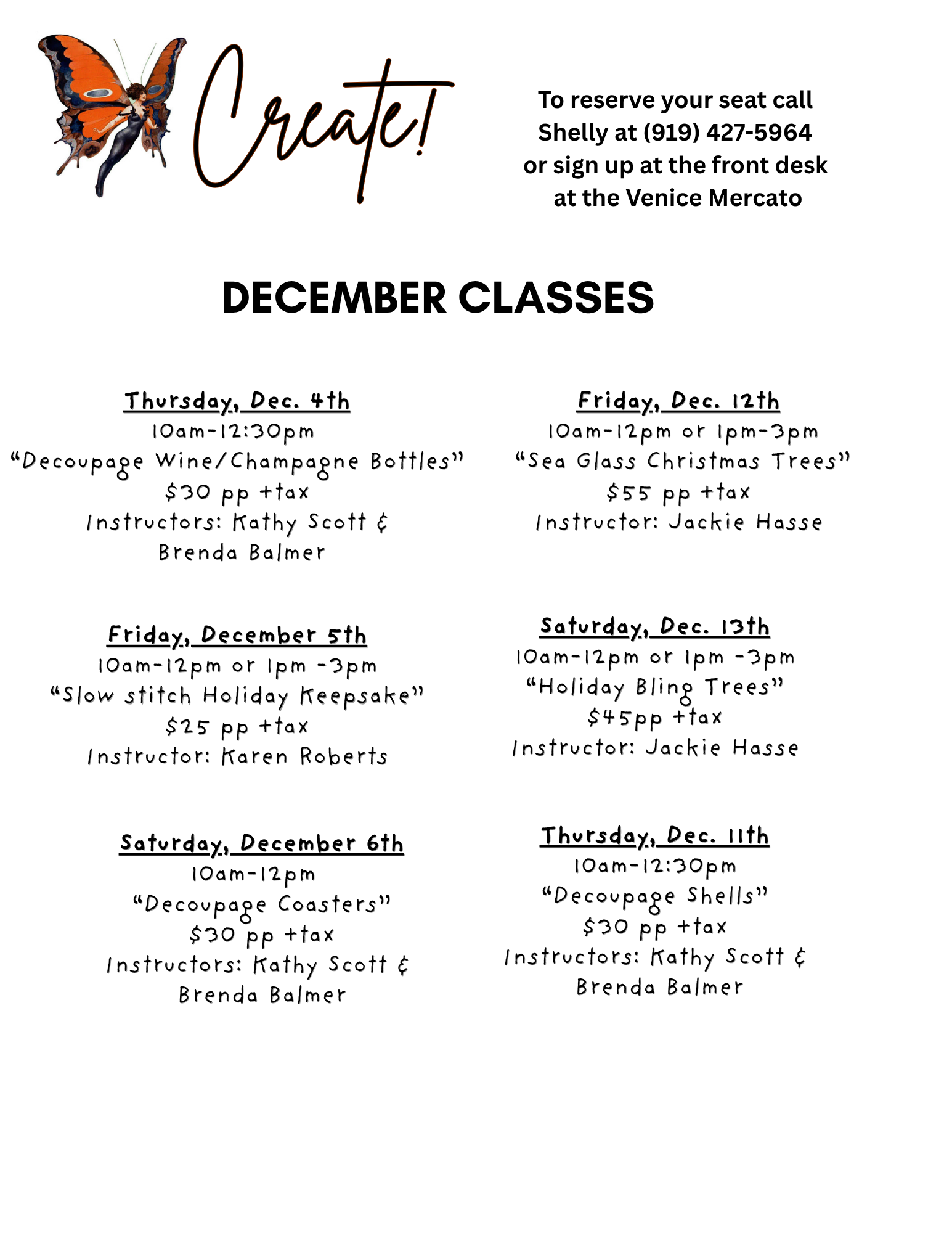 See class schedule, pricing and contact information below.